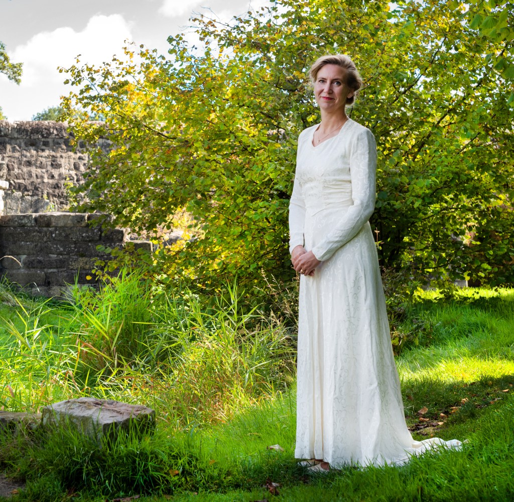 Karin Larsson i brudklänning, målad av Carl Larsson i Grez-sur-Loing.Rebecka i brudklänning i Grez-sur-Loing 2024. Bild: Dick Gillberg