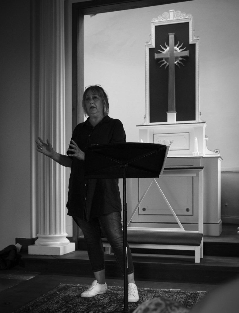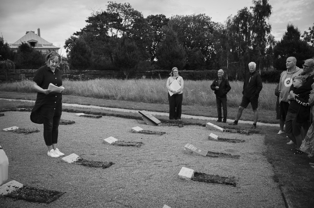 Martina Hansson berättar om kapellet och begravningsplatsen vid Apelvikens kustsanatorium i Varberg. Bild: Dick Gillberg