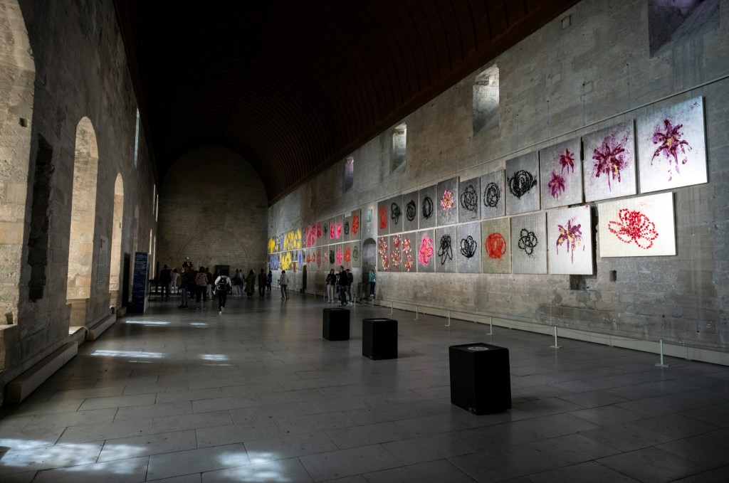 Batia Suters bilder visades i de underjordiska valven vid stadens torg. Ljussättningen och miljön, och att vandra mellan bilder projicerade på textil i denna 2000 år gamla miljö var en häftig upplevelse.