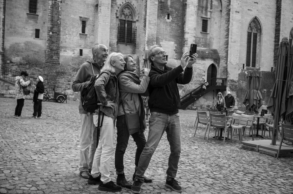 Påvepalatset i Avignon tillhörde Vatikanstaten fram till 1791. Bild: Dick GillbergKlart man vill ta en bild utanför påvepalatset! Är alla med? Nu! Bild: Dick GillbergDe svarta lådorna i mitten av salen kröns av ett slags QR-koder som besökarna till påvepalatset kan fånga in med hjälp av de läsplattor som de tilldelas i entrén. Få besökare verkade vara förtjusta i denna lösning. Idén kan vara god, men tekniken var inte särskilt användarvänlig. Ge oss en riktig guide! Bild: Dick GillbergEn av påvepalatsets trädgårdar fann vi i den östra delen av palatset. Bild: Dick GillbergPåvepalatset i Avignon med sin krenelerade mur varifrån palatsets försvarare kan skjuta från öppningarna och söka skydd bakom tinnarna. Bild: Dick Gillberg
