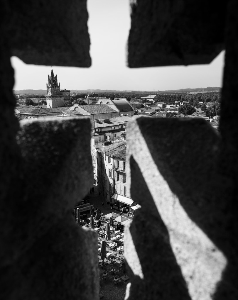 Med utblick från ett av påvepalatsets torn, över torget strax nedanför, staden och det omkringliggande landskapet. Bild: Dick Gillberg