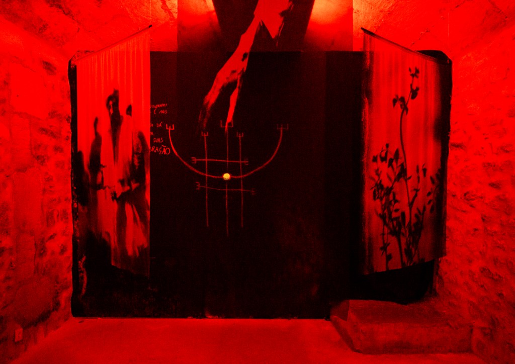 Häxkonster. I anslutning till fransk-tyska fotografen Ann-Christine Woehrls utställning med bilder på kvinnor anklagade för häxeri i Ghana fanns denna ljus-, ljud- och bildinstallation. Bild: Dick Gillberg