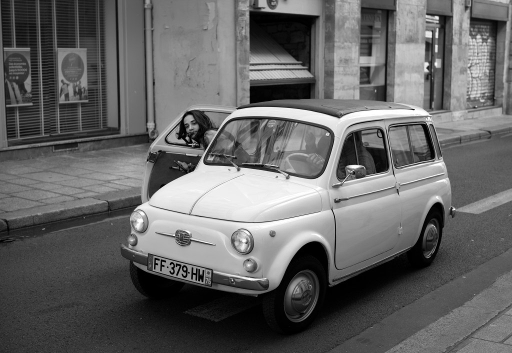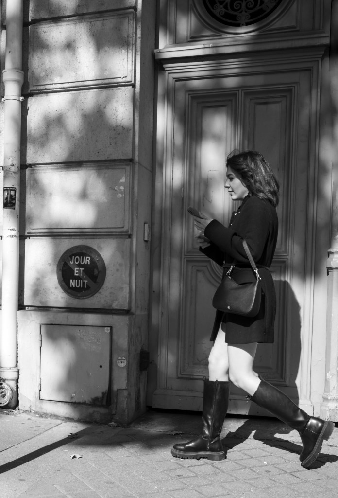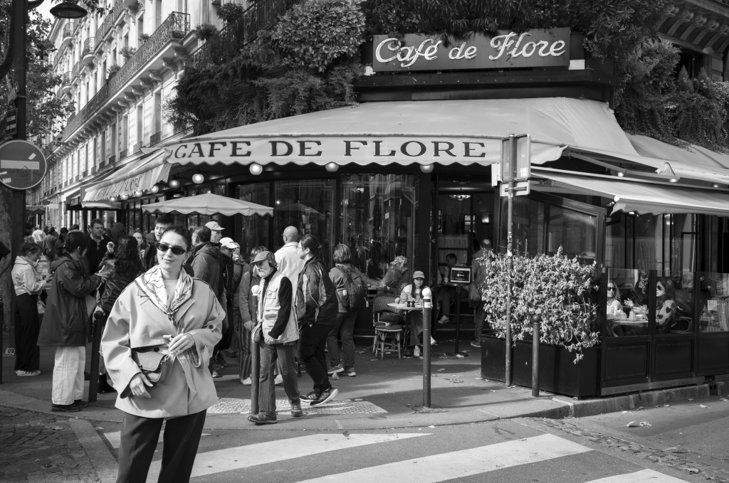 Helg och tid för en tur i bil. En Fiat 500 med sufflett. Bild: Dick GillbergParkera inte här någon gång under dygnet. Kvinnan skyndar på i steget. Bild: Dick GillbergDet är minst lika många människor utanför Café de Flore som det är inne på serveringen. Bild: Dick Gillberg