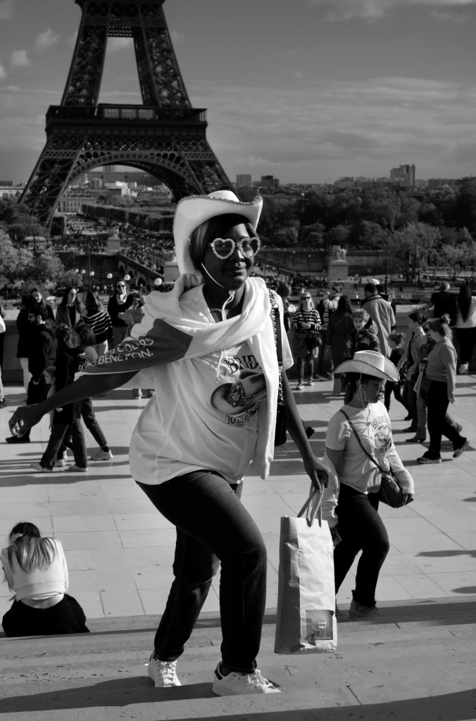 Vi möter en möhippa i folkvimlet i trapporna vid Trocadéro. Härifrån har man obruten utsikt mot Eiffeltornet. Bild: Dick Gillberg