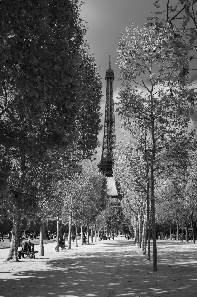 Paris i oktober. Vi promenerar på Marsfältet mot Eiffeltornet. Det är en solig helg och på gräsmattorna samlas parisare och turister till picknick.