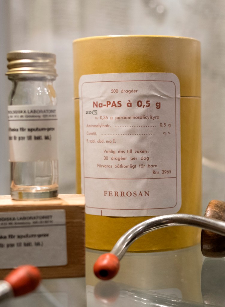 Vi hör mycket om medicinerna under vår reserach om sanatoriet. Om hur de än i dag behöver ges i kombination och under mycket lång tid, men också om skillanden de gjorde när de introducerades.