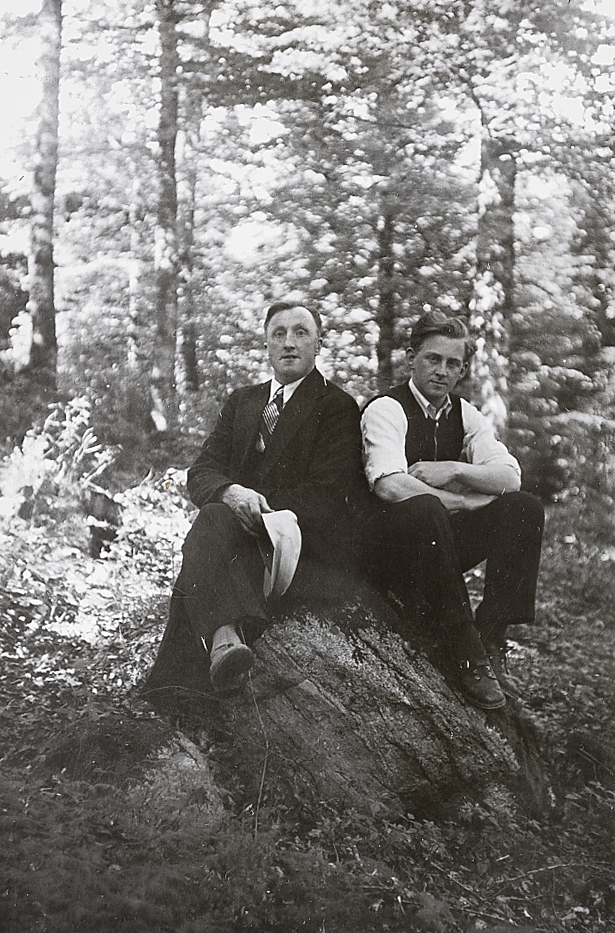 En solig dag i grönskan vid Fagereds sanatorium, någon gång under 1930- eller 1940-talet. Solstrålarna strilar ner genom lövverket. Vilka männen på bilden är vet vi inte. Men vi gissar att de är ute på en promenad. Kanske ordinerad av doktorn. Så hittar de stenen – precis lagom hög att sitta på. Ska vi ta en bild? Det klart. De sätter sig. Tittar in i kameran. Fotografen knäpper av bilden. Vi hittar dem i ett fotoalbum.